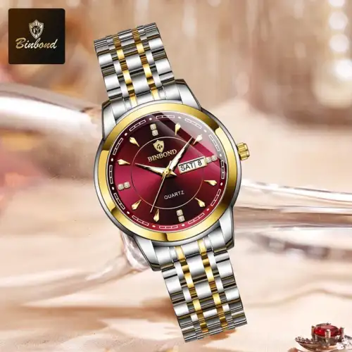 BINBOND Fashion Ladies Quartz Wristwatch Luxury Stainless Steel Waterproof Women’s Watch Luminous Women’s Watches Original Clock