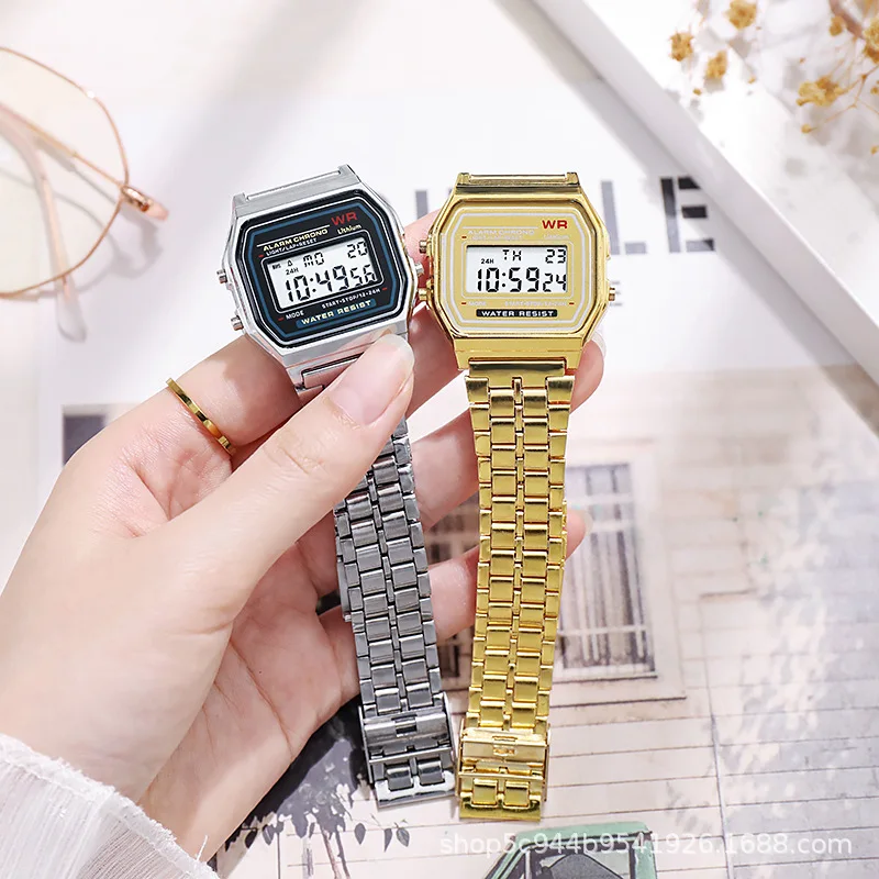F91W Non-Waterproof Steel Band Watch for Women Men Business Clock Multi-Functional LED Digital Sports Watch Electronic Clock