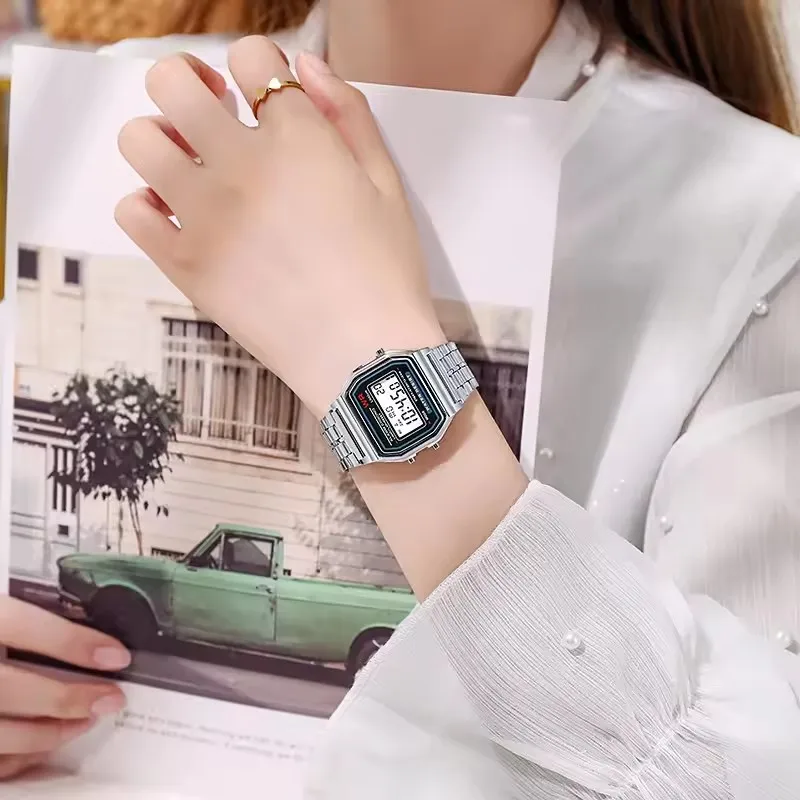 F91W Non-Waterproof Steel Band Watch For Women, Men, Business Clock, Multi-Functional LED Digital Sports Watch, Electronic Clock