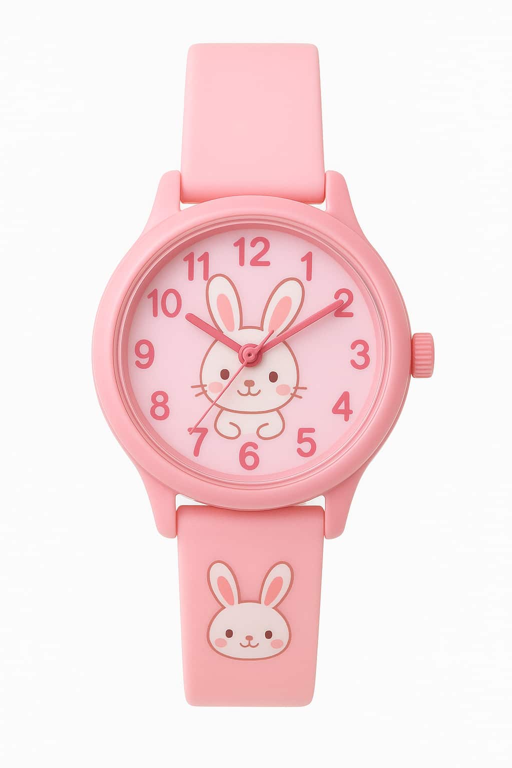 Bring a touch of playful charm to your wrist with the FunTime Pink Bunny Watch. Designed for kids and young-at-heart adults, this watch features a soft pastel pink strap decorated with adorable bunny motifs. The dial is simple, easy-to-read, and protected with a clear durable cover, making it perfect for everyday wear. Lightweight, comfortable, and fun, it’s a delightful accessory that combines practicality with cuteness.
